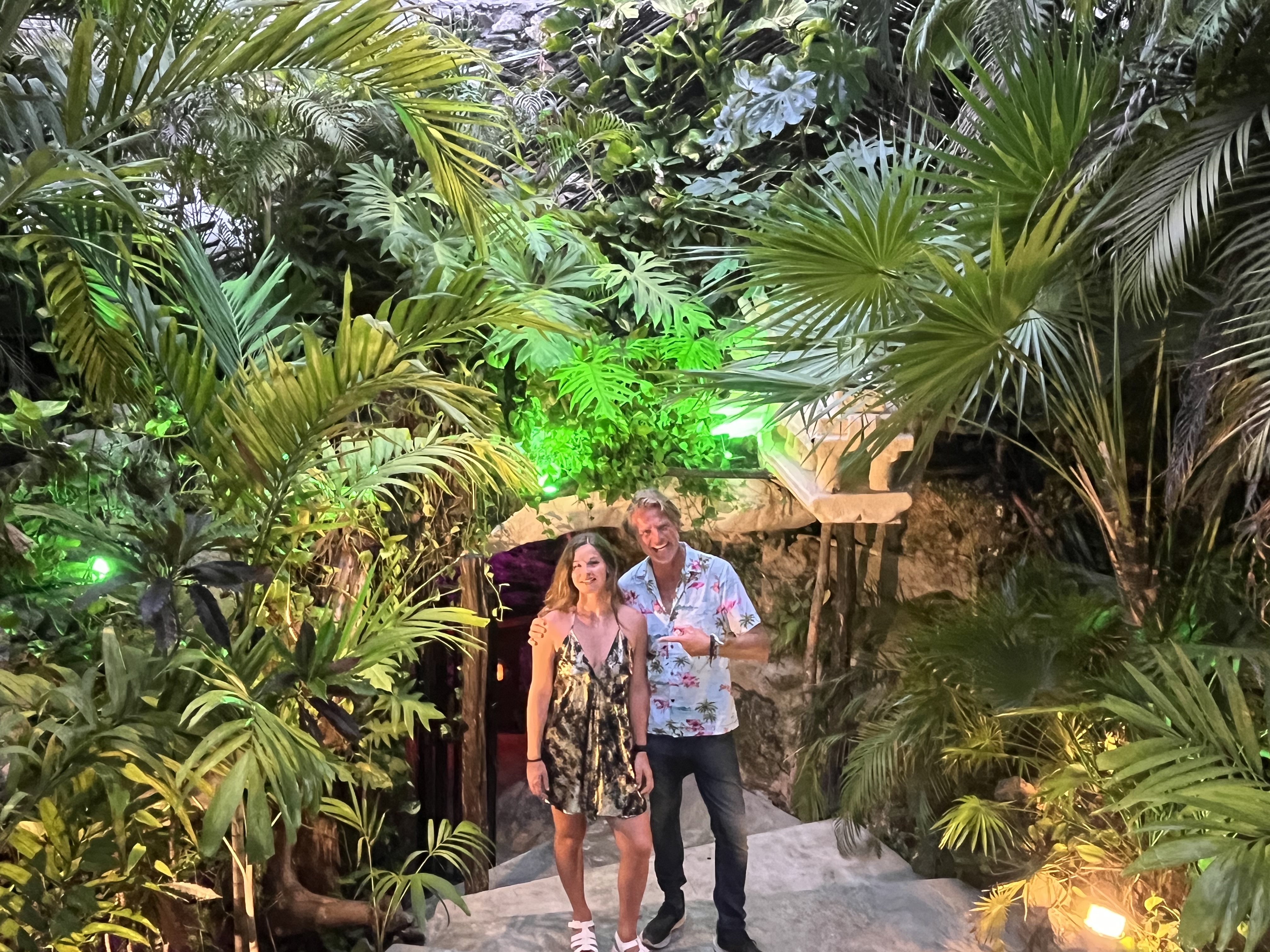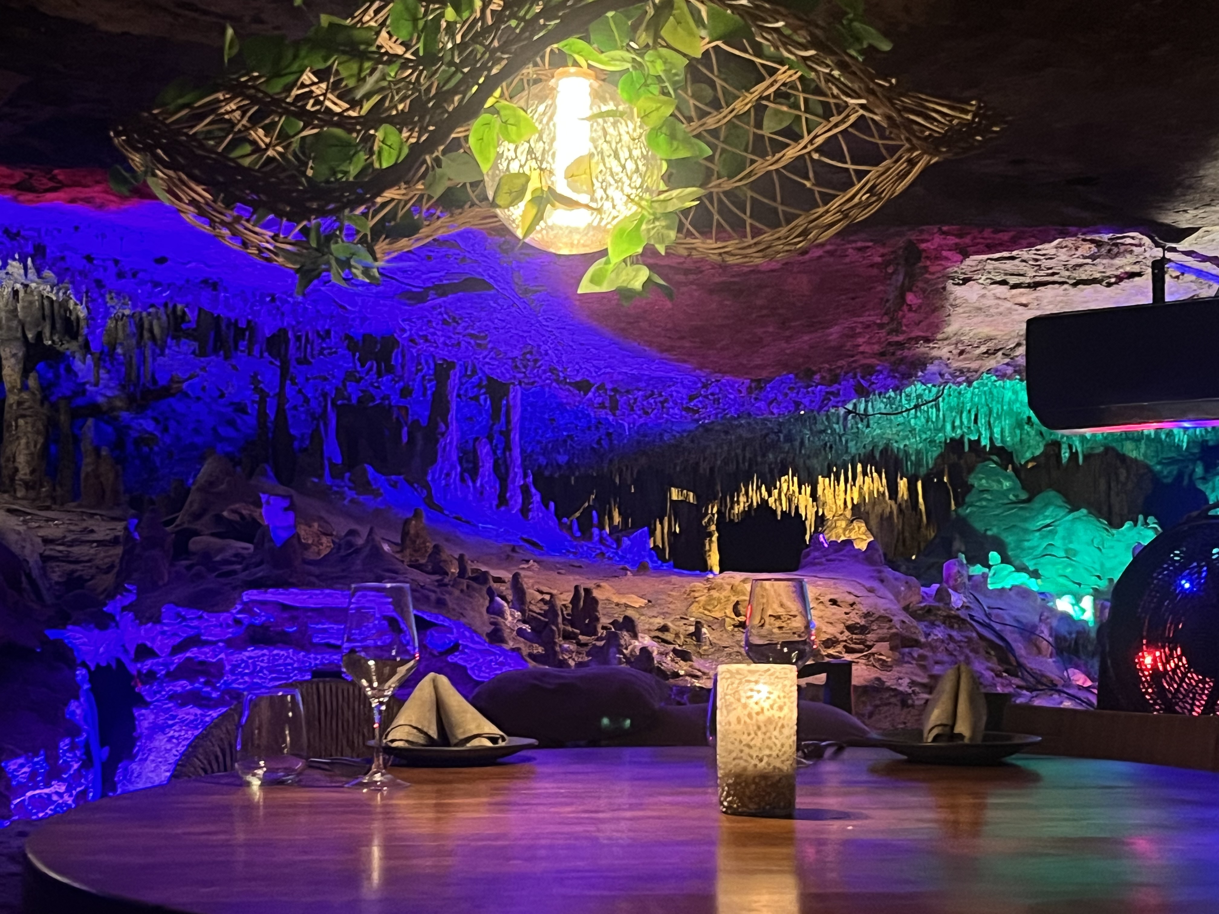 Mais cette journée exceptionnelle est loin d’être terminée. Arrivés à Playa, pour le départ de nini, nous avons concocté une soirée mémorable qui commence par le resto «Alux» ce lieu enchanteur qui invite à vivre une expérience culinaire inoubliable dans une grotte naturelle, millénaire, offrant un décor à couper le souffle avec les formations rocheuses naturelles et l’atmosphère mystique qui y règne. Les lumières tamisées, les cascades souterraines et l’acoustique naturelle créent une ambiance incomparable. Et que dire de la gastronomie qui propose une fusion de plats mexicains traditionnels et de créations modernes. Chaque plat est une œuvre d’art. Tous nos sens sont sollicités!!