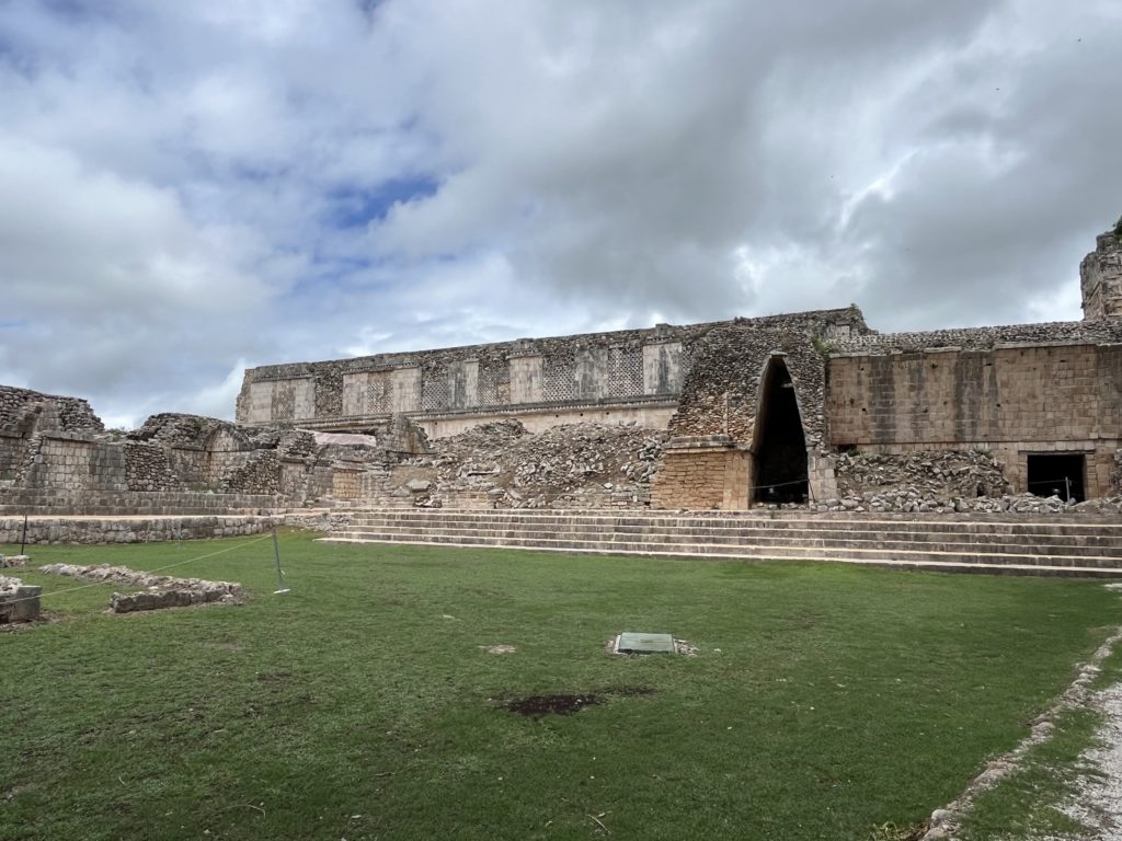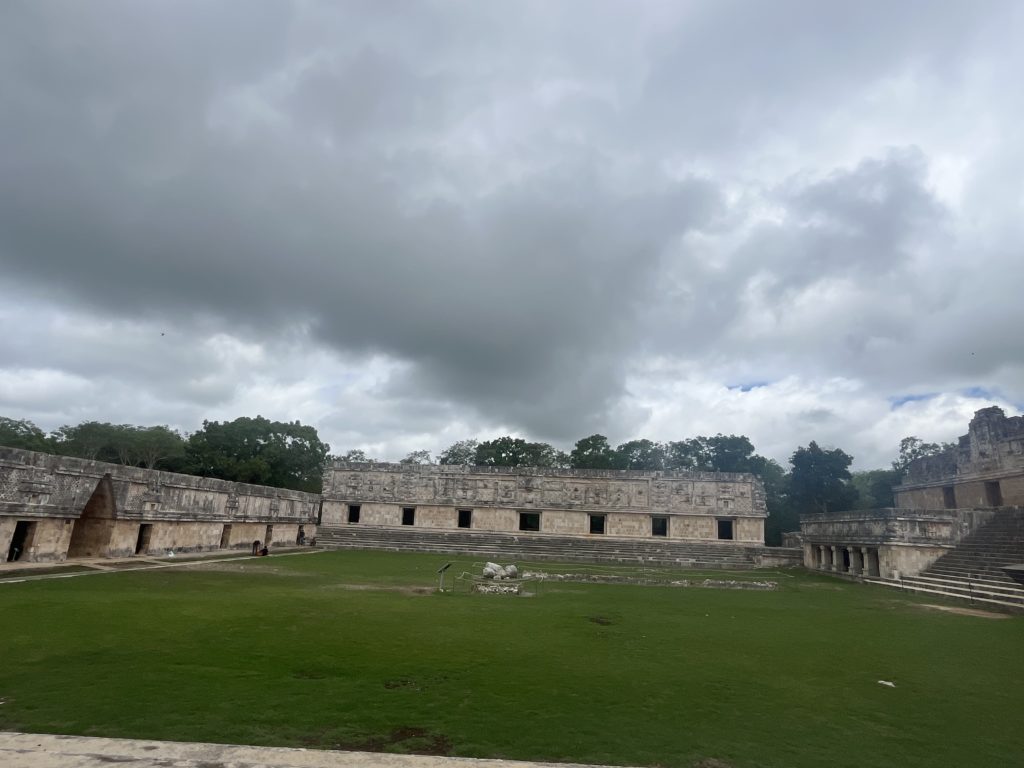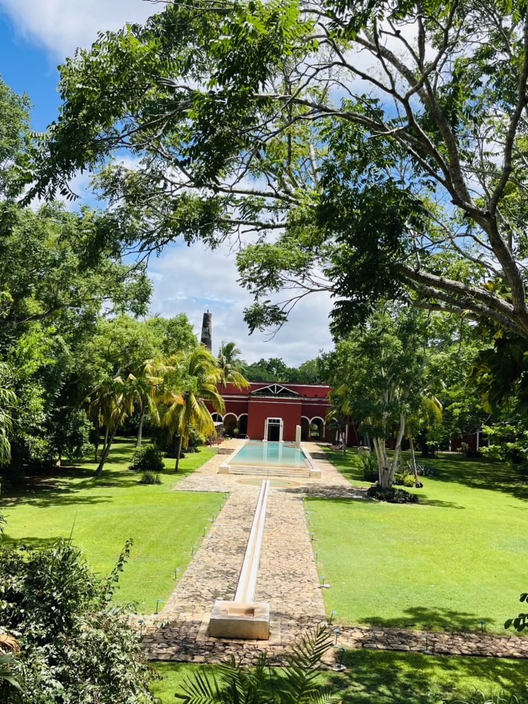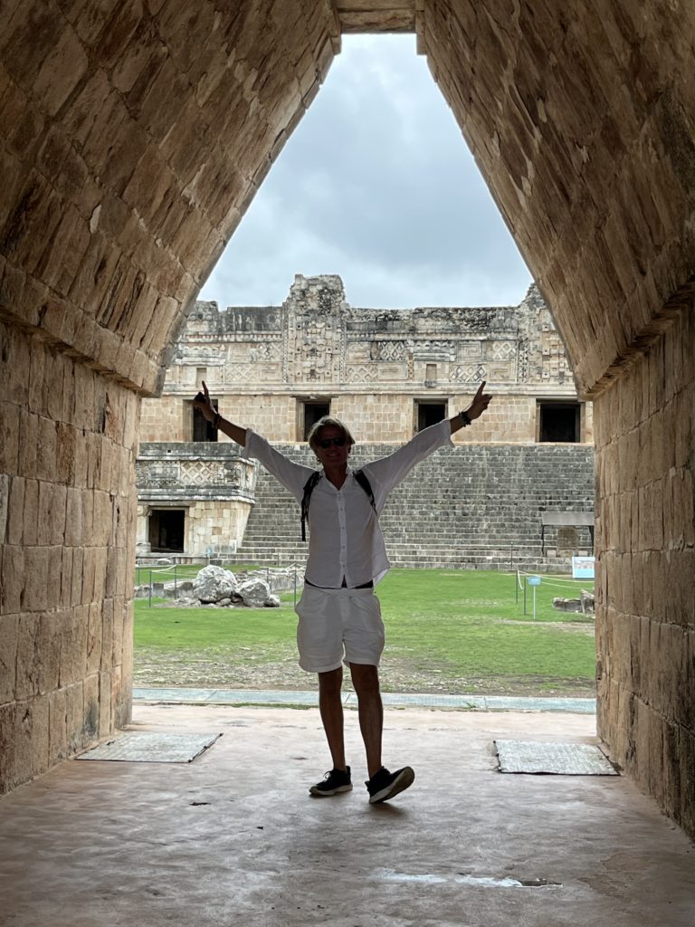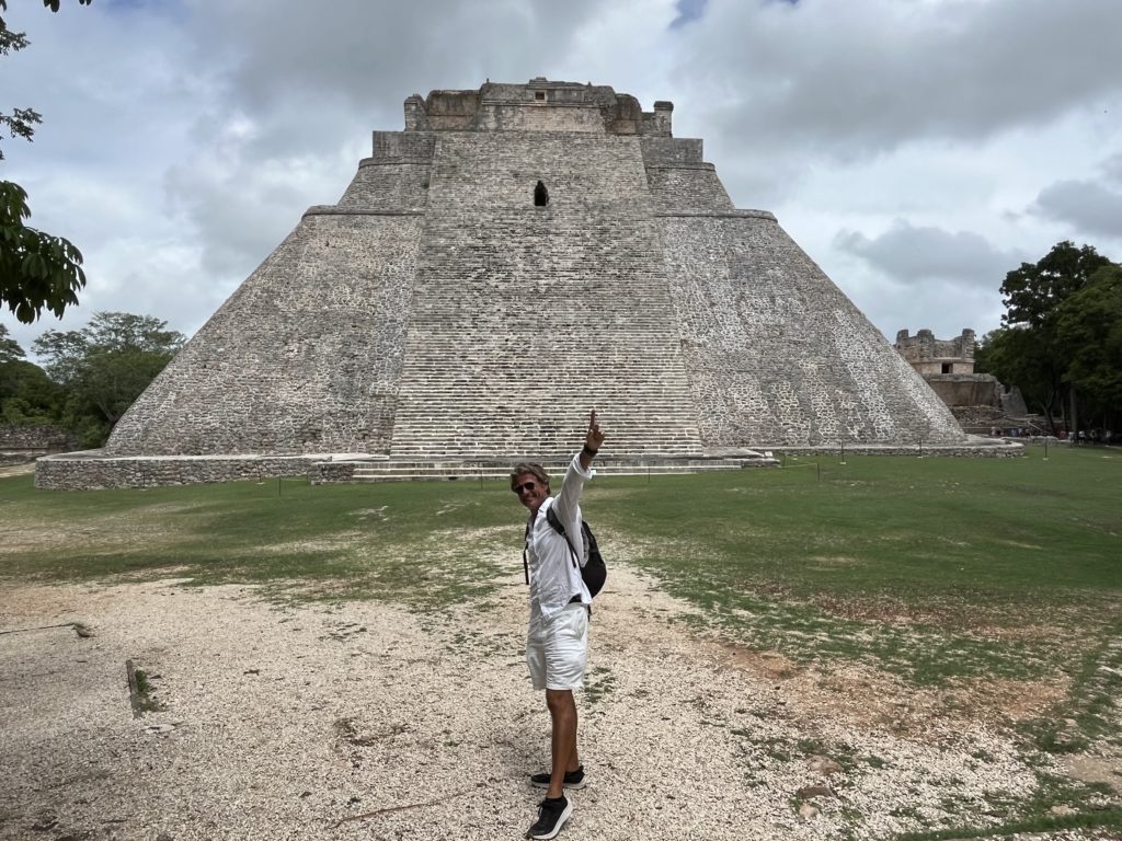 Après une nuit sans sommeil, nous recevons à 6h30 (au Mexique) la première photo de notre première petite fille: Lilly. Inutile de dire à quel point on est émus (notre bébé a eu un bébé) et heureux mais aussi rassurés que tout se soit bien passé et que la maman, le papa et Lilly vont très bien 🤩 Pas parce que c’est notre première petite fille, mais elle est vraiment trop belle 🥹 et perpétue la lignée des géants des Flandres; quand même 4kg 300!!! L’attente avant de la voir va être longue et difficile 😞 😢😥 Ce matin, après ce plein d’émotion, nous partons visiter Uxmal. C’est l’un des sites archéologiques les plus impressionnants du Mexique. Inscrit au patrimoine mondial de l’UNESCO. Pour l’histoire, Uxmal (« Ouchmal ») signifie trois fois construite en yucatèque. L’histoire de la cité d’Uxmal est assez brève, elle a prospéré en tant que centre majeur de la civilisation maya pendant son apogée, entre les années 700 et 1000. Le site archéologique de Uxmal est réputé pour son architecture maya de style Puuc exceptionnelle et son état de conservation remarquable. Le style Puuc se caractérise par son souci du détail et sa précision dans l’agencement des structures. Les bâtiments puuc sont souvent richement ornés de sculptures complexes et de frises finement sculptées. Les motifs géométriques sont omniprésents, créant une esthétique unique et captivante. Les édifices puuc se distinguent également par l’utilisation de pierres bien taillées et assemblées avec soin. Les murs sont lisses et uniformes, démontrant un haut niveau de maîtrise technique. Qui dit UNESCO, dit prix en conséquence! Quand nous entrons dans le site, nous sommes accueillis par la grande Pyramide du Devin (Pyramide de l’Adivino). Emblème d’Uxmal, cette imposante structure pyramidale est unique en raison de sa forme elliptique et de ses cinq niveaux. Le Quadrilatère des Nonnes (Cuadrángulo de las Monjas) est lui, l’un des ensembles les plus vastes et les mieux préservés d’Uxmal. Il se compose de plusieurs bâtiments reliés entre eux, comprenant des cours intérieures, des palais et des plates-formes. Les façades sont richement ornées de sculptures détaillées. Vient ensuite le Palais du Gouverneur (Palacio del Gobernador), un bâtiment massif est connu pour sa grande taille et son style architectural distinctif. Il présente des frises finement sculptées représentant des serpents à plumes et d’autres divinités mayas. L’intérieur du palais comprend des salles voûtées et des cours intérieures. Nous découvrons également le Jeu de Balle (Juego de Pelota). Cet espace cérémoniel était utilisé pour les jeux rituels et les compétitions importantes. Une fois la visite terminée, nous allons fêter l’arrivée de Lilly en allant déjeuner à l’hacienda Temozón Sur. Créée en 1655 comme estancia ganadera par Diego de Mendoza, un proche parent de Francisco de Montejo, la propriété est d’abord vouée à l’élevage, puis progressivement au maïs, au tabac et à la canne à sucre. Au XIXᵉ siècle, rachetée par Carlos Peón Machado (gouverneur du Yucatán, 1894‑1897), elle devient l’une des plus importantes plantations de henequén, avec plus de 6 600 ha et 640 travailleurs (esclaves mayas surtout). Après un incendie désastreux en 1908, puis les réformes foncières post‑révolutionnaires (1921, 1937), la hacienda se réduit et cesse ses activités en 1987. Elle est aujourd’hui exploitée comme hôtel de luxe et restaurant. Un décor incroyable et magnifique même si le repas n’est pas au niveau du cadre!
