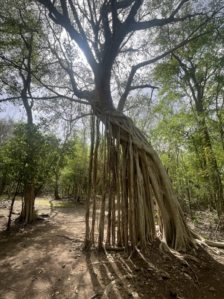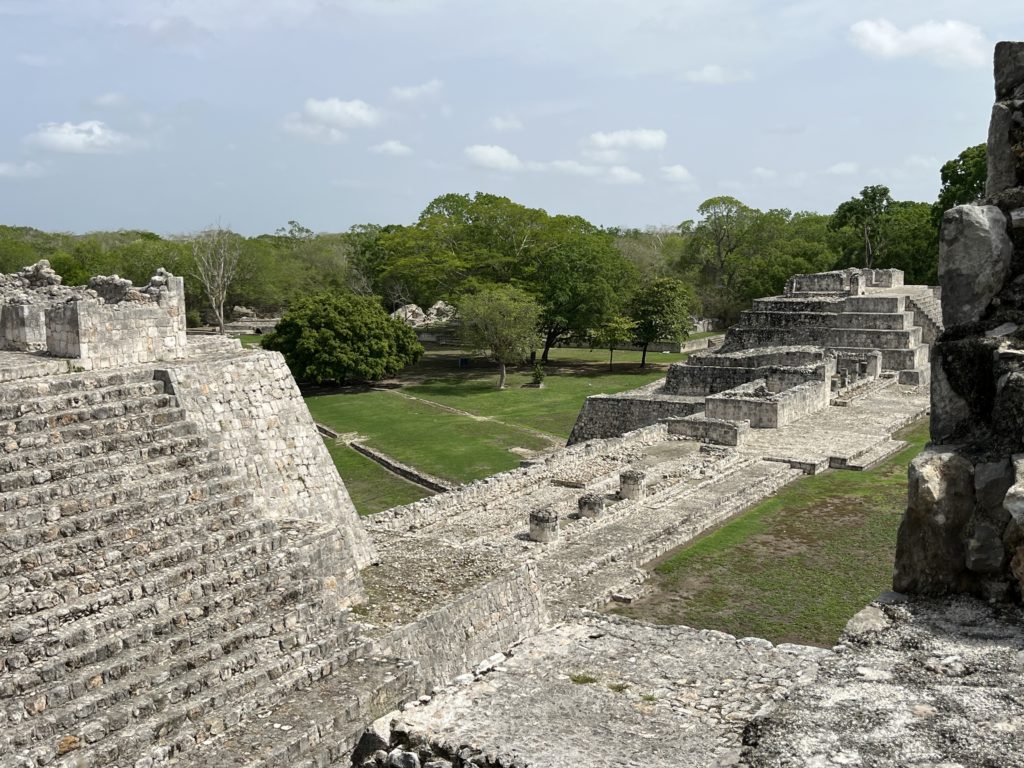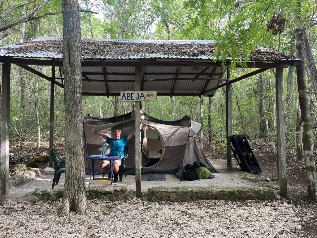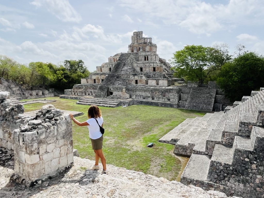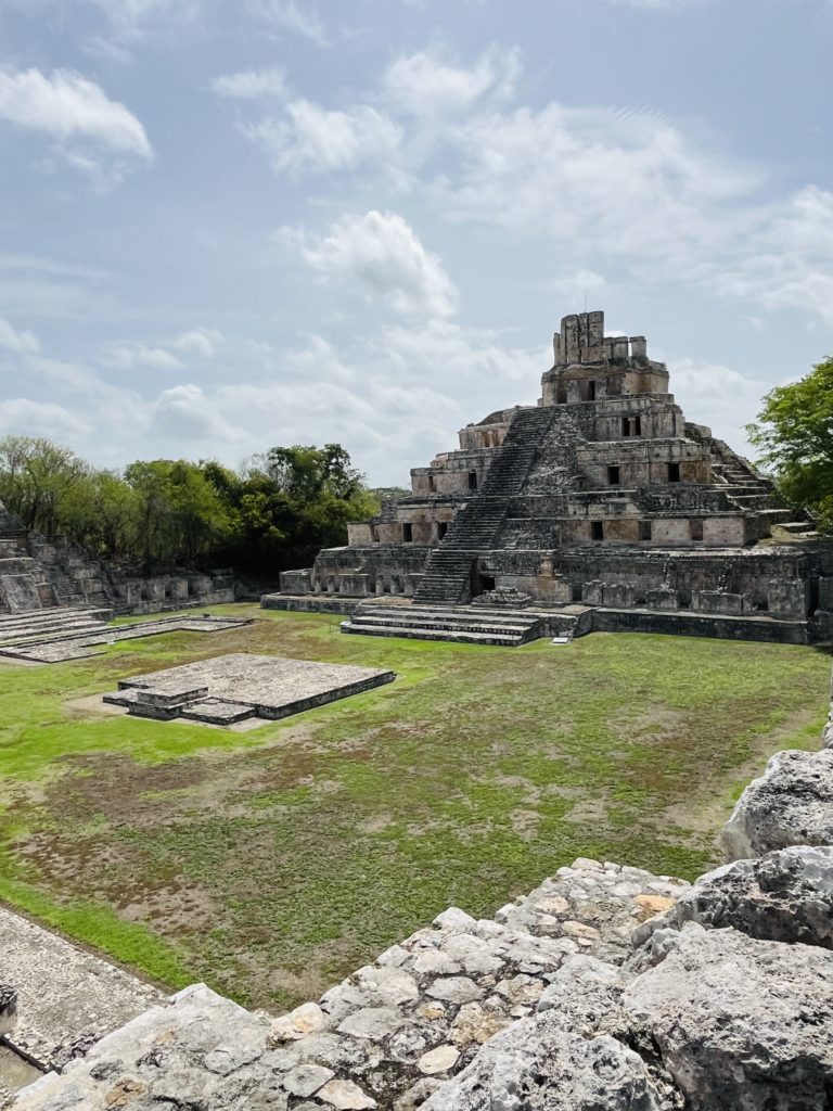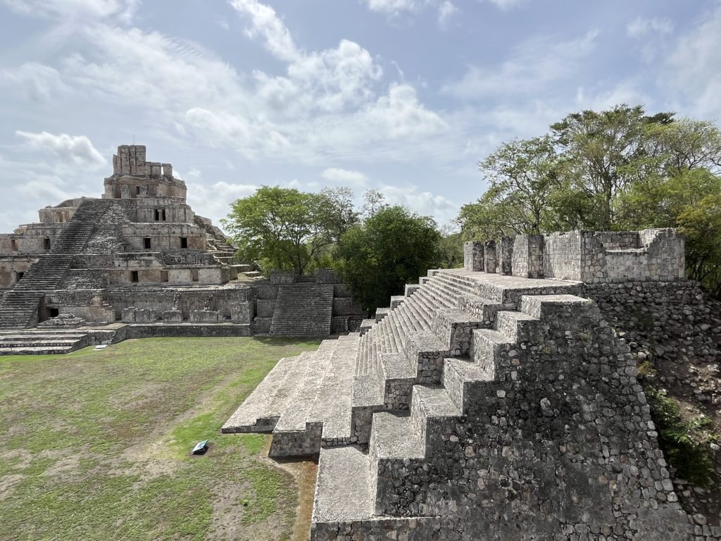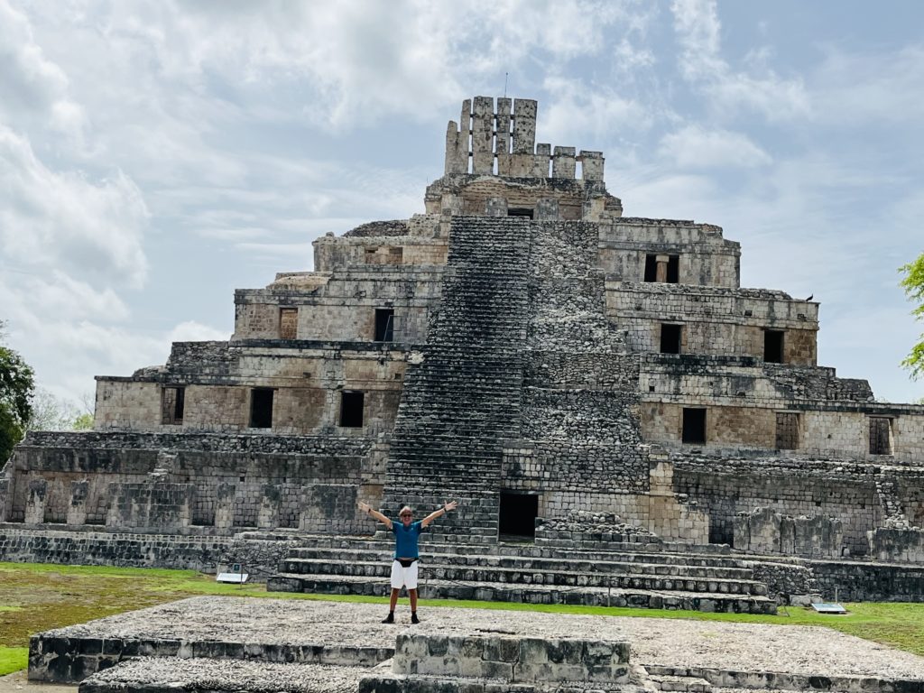 Nous prenons la route ce matin, direction le sud de la péninsule dans l’état du Campeche. En chemin, arrêt au Site archéologique maya de Edzná où nous sommes seuls au monde pour profiter des pyramides. Les ruines d’Edzná présentent ce qu’il reste aujourd’hui d’une cité Maya autrefois très puissante et régnant sur une partie de la région. Edzná a acquis son importance en partie grâce à la maîtrise de l’eau. Elle a su créer un ingénieux réseau hydraulique de 6 km de long permettant à la population d’avoir accès à l’eau. L’irrigation des cultures était un élément important que la population d’Ezna a su mettre en place. La pyramide principale du site archéologique d’Edzná est d’un style tout à fait singulier avec ses cinq étages abritant des chambres voûtées. Les ruines d’Edzná sont un site hors des sentiers battus au Mexique et est très peu fréquenté, idéal pour en profiter pleinement. Puis nous repartons en direction de calakmul pour la visite des prochaines pyramides. Petit couac, je me trompe de route, ce qui nous rajoute une bonne heure trente au compteur. Soupe à la grimace dans la voiture surtout que la route est remplie de nids de poules, en l’occurrence plutôt des nids de cigognes. Et tout ça pour aller dormir dans une tente en pleine jungle. Arrivés trop tard, on a plus le temps d’aller visiter la pyramide qu’on remet à demain.