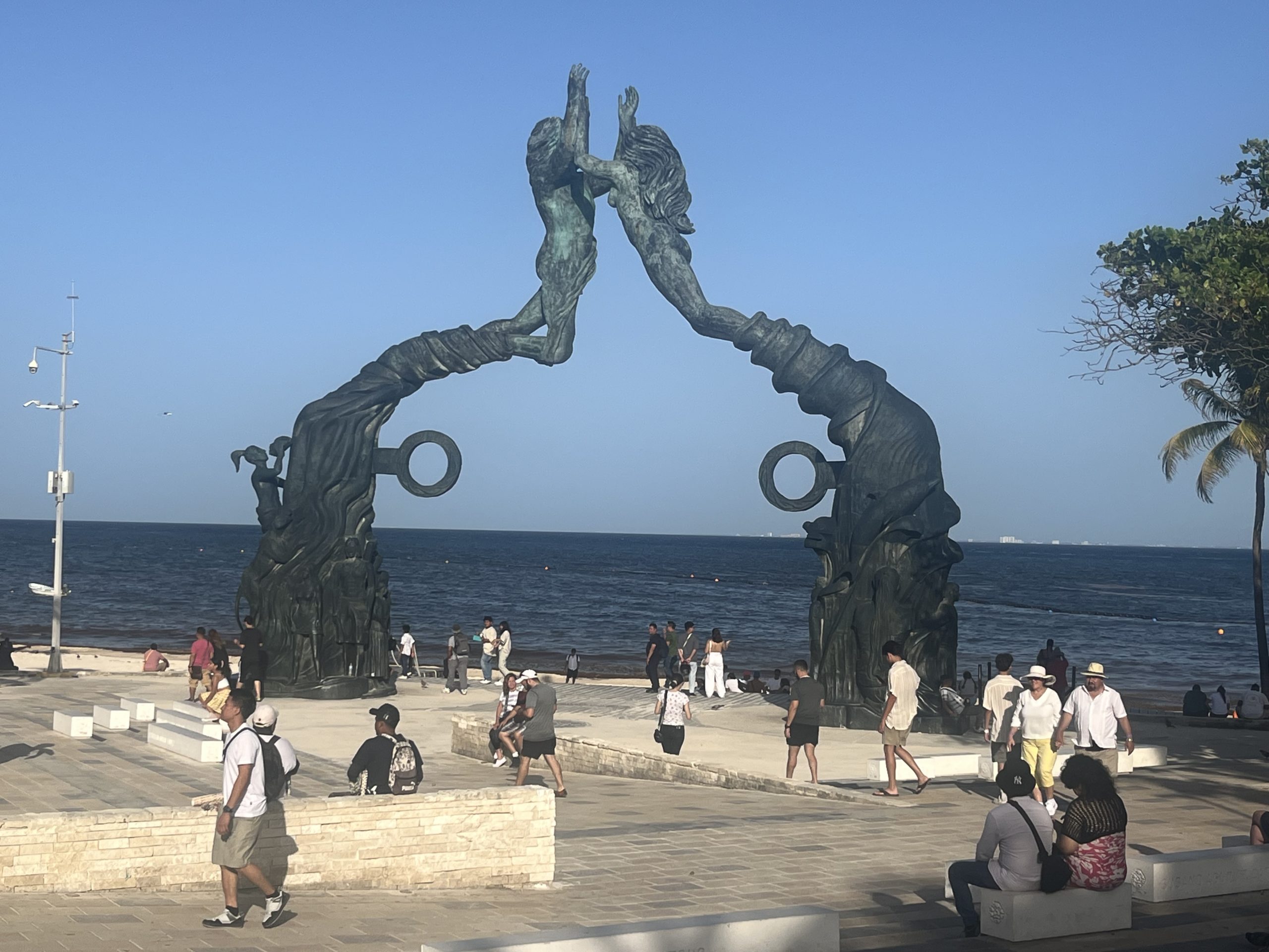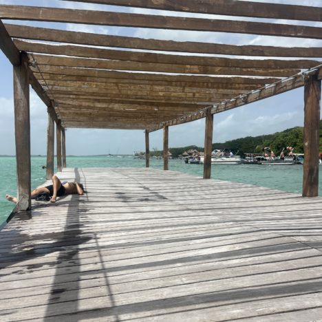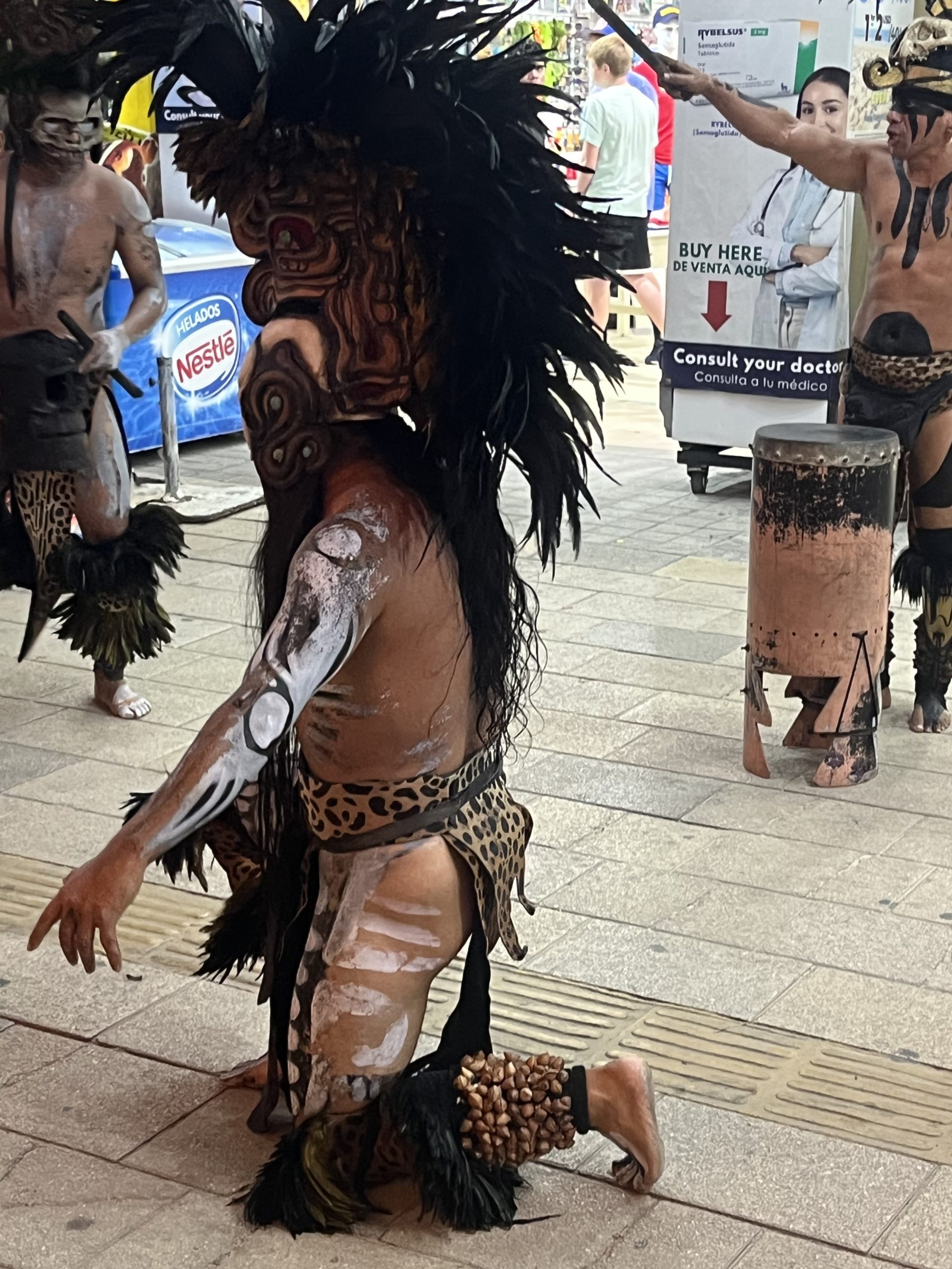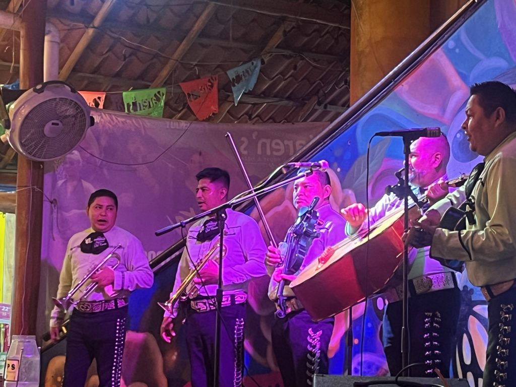Départ pour playa del carmen, que l’on avait déjà visité avec Nini. C’est un peu la petite sœur de Cancun mais à taille humaine. Petit couac sur la route; nous sommes arrêtés par un motard de la police municipale qui nous affirme que l’on roule trop vite et que l’on prend les dos d’âne à toute allure. Bien sûr, c’est complètement faux mais il garde le permis de conduire de pat en précisant qu’il faut le récupérer demain au poste, moyennant une belle amende!!! On sait qu’il existe de la corruption policière au Mexique, on est donc pas étonnés lorsqu’il nous propose de tirer un trait sur la « soi disant »infraction, moyennant back chich conséquent. Dans ces cas là, mieux vaut ne pas discuter, payer et partir la queue entre les jambes avec un patrick énervé et furibond dans la voiture! Bon, après cette petite mésaventure, je retrouve les boutiques à foison ce qui me permet de faire un petit changement de garde robe dans le sac à dos. Vraiment pas la journée de Pat!!! Nous nous baladons dans la rue piétonne et en chemin, je me décide à rentrer dans un salon de tatouage. J’explique ce que je veux, donne un modèle et redéfinis le dessin à ma sauce! Le RV est pris pour dans 2 jours, une fois les activités aquatiques terminées. Avant de nous rendre à l’hôtel, nous réservons l’activité pour demain: du snorkeling sur Cozumel, l’île en face. Un must!!!  Ce soir, nous retournons au restaurant Alux qui nous avait tellement ébloui avec Nini. Nous ne sommes que nous 2 mais le cadre est toujours aussi enchanteur, sans parler de la nourriture et des cocktails présentés sous un dôme rempli de fumée! Toujours un coup de cœur pour le dessert chocolat café !!! Sur le chemin pour rentrer, un concert de mariachis dans un resto typique mexicain nous appelle. Une petite corona et nous voilà dans l’ambiance!!