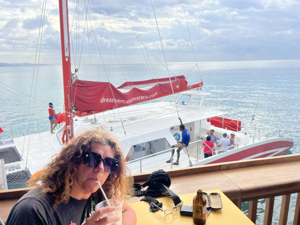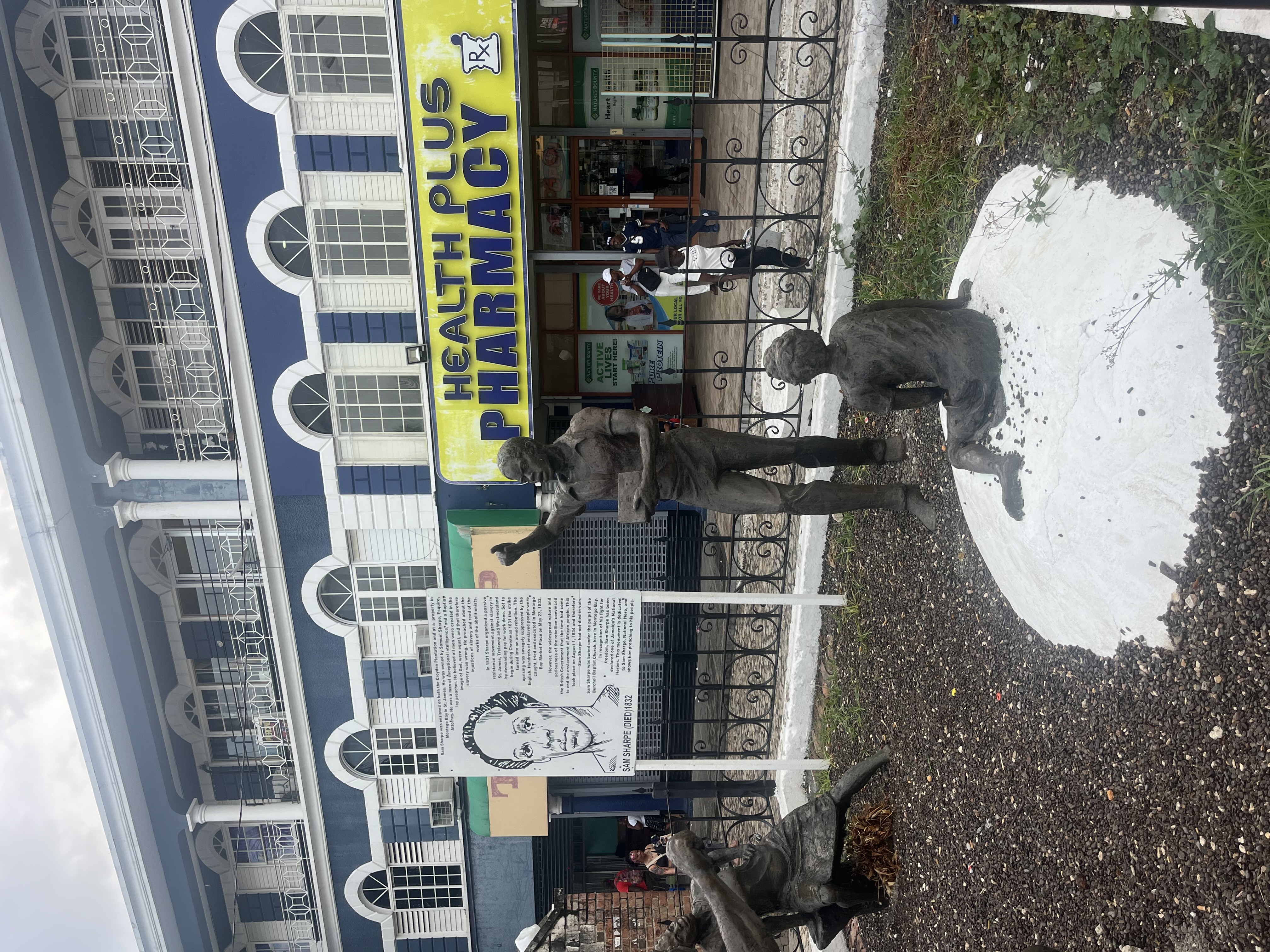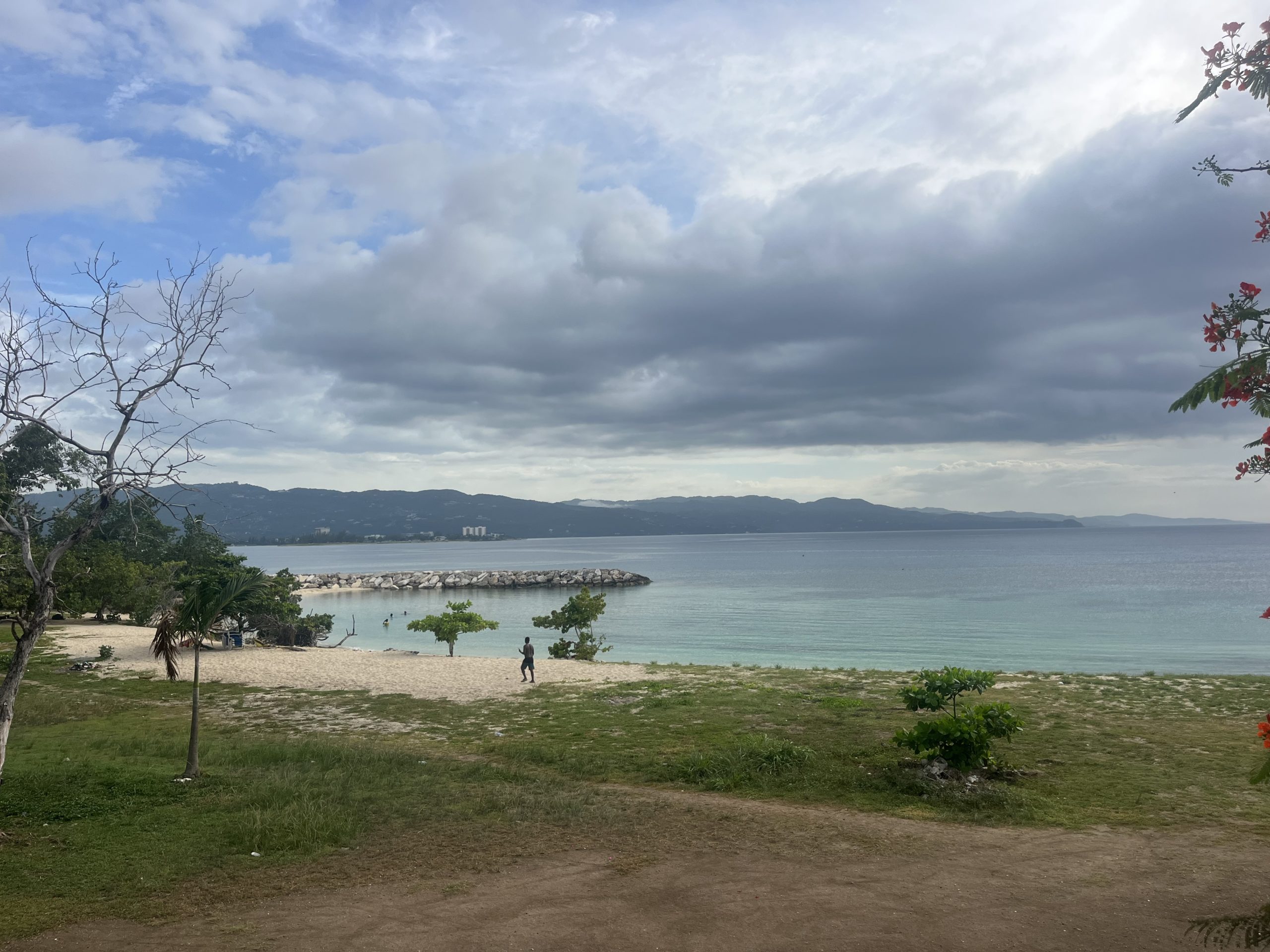 Après une attente de plus de 10h à l’aéroport, nous embarquons dans l’avion, direction la Jamaïque avec une escale de 2h à houston au Texas. Une nuit sans sommeil et pour couronner le tout, je me retrouve dans l’avion coincée entre Patrick et un jamaïcain d’au moins 250kg qui me laisse une moitié de siège. Inutile de préciser que j’arrive à montego bay, fatiguée et ronchon. Nous récupérons la voiture de location et on se rend vite compte que non seulement la conduite est à gauche mais surtout qu’elle va être sportive!!! Fini l’ambiance latino tranquille! Ici c’est booty shake, klaxon, odeur de beu partout, l’Afrique quoi!!! On récupère le logement et nous partons à la découverte de la ville avant que je ne m’effondre sur le lit. Un jamaïcain nous interpelle devant Sam Sharpe Square, une place historique qui a été nommée en l’honneur de Samuel Sharpe, un leader de la rébellion de 1831-1832 qui a lutté pour la liberté des esclaves et qui a été pendu à l’endroit où se trouve une fontaine maintenant. Entre la poire et le dessert, il nous propose un peu de marijuana!!!! Nous n’avons pas dormi depuis plus de 24h, mais rien mangé non plus. Nous nous rendons au resto bar margharitaville pour goûter bien sûr une margharita, accompagnée du plat typique, le chicken jerk!!! Et bien, je pense que ce plat est un peu annonciateur de ce que vont être ces 15 jours sur cette célèbre île, à savoir très très très hot!!!!! En effet un catamaran et sa cinquantaine de passagers nichons et popotins énormes débordants débarquent dans le bar dans une ambiance survoltée. Ces 15 jours commencent sous de bons hospices!!!