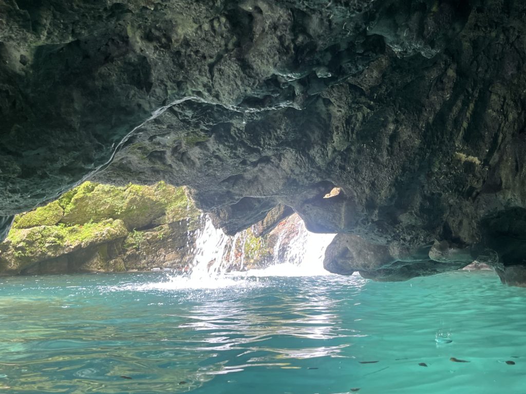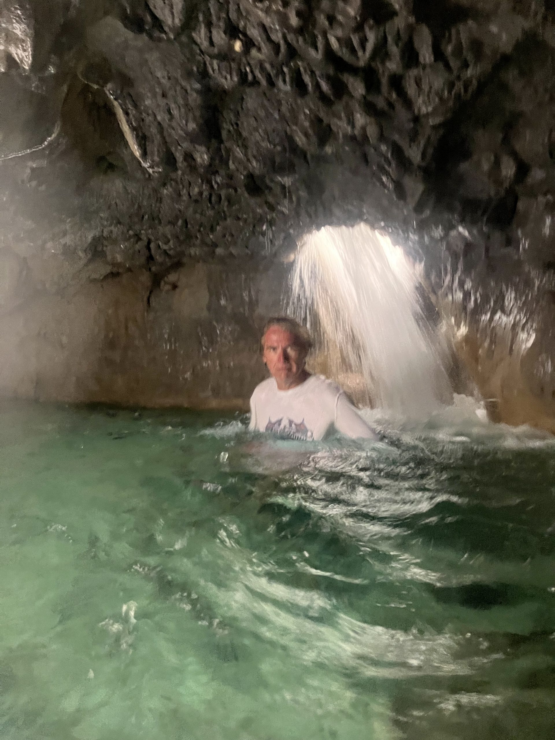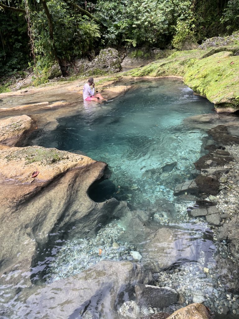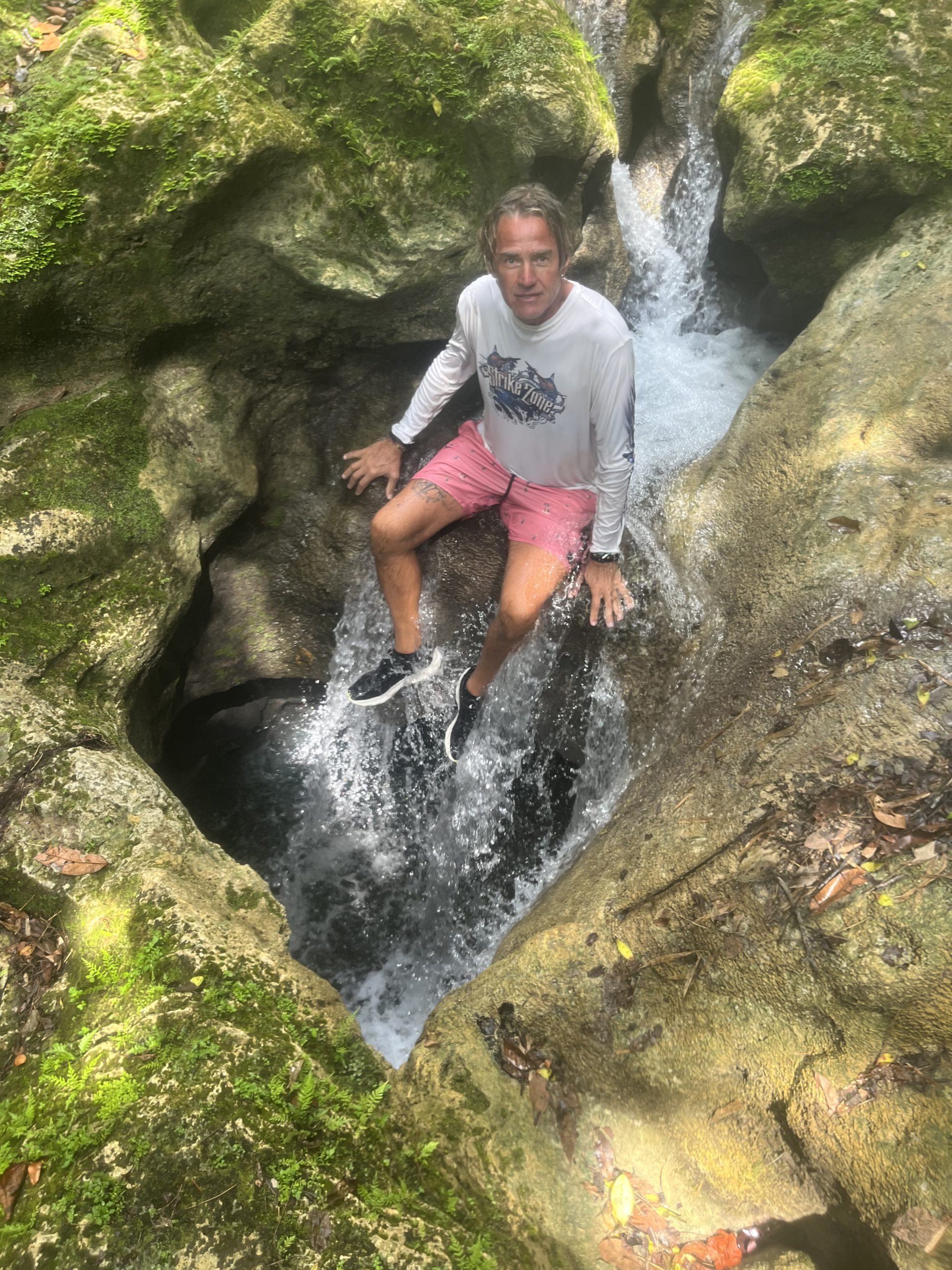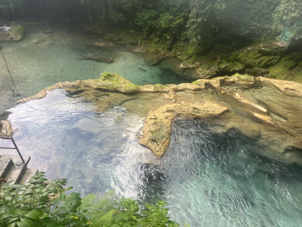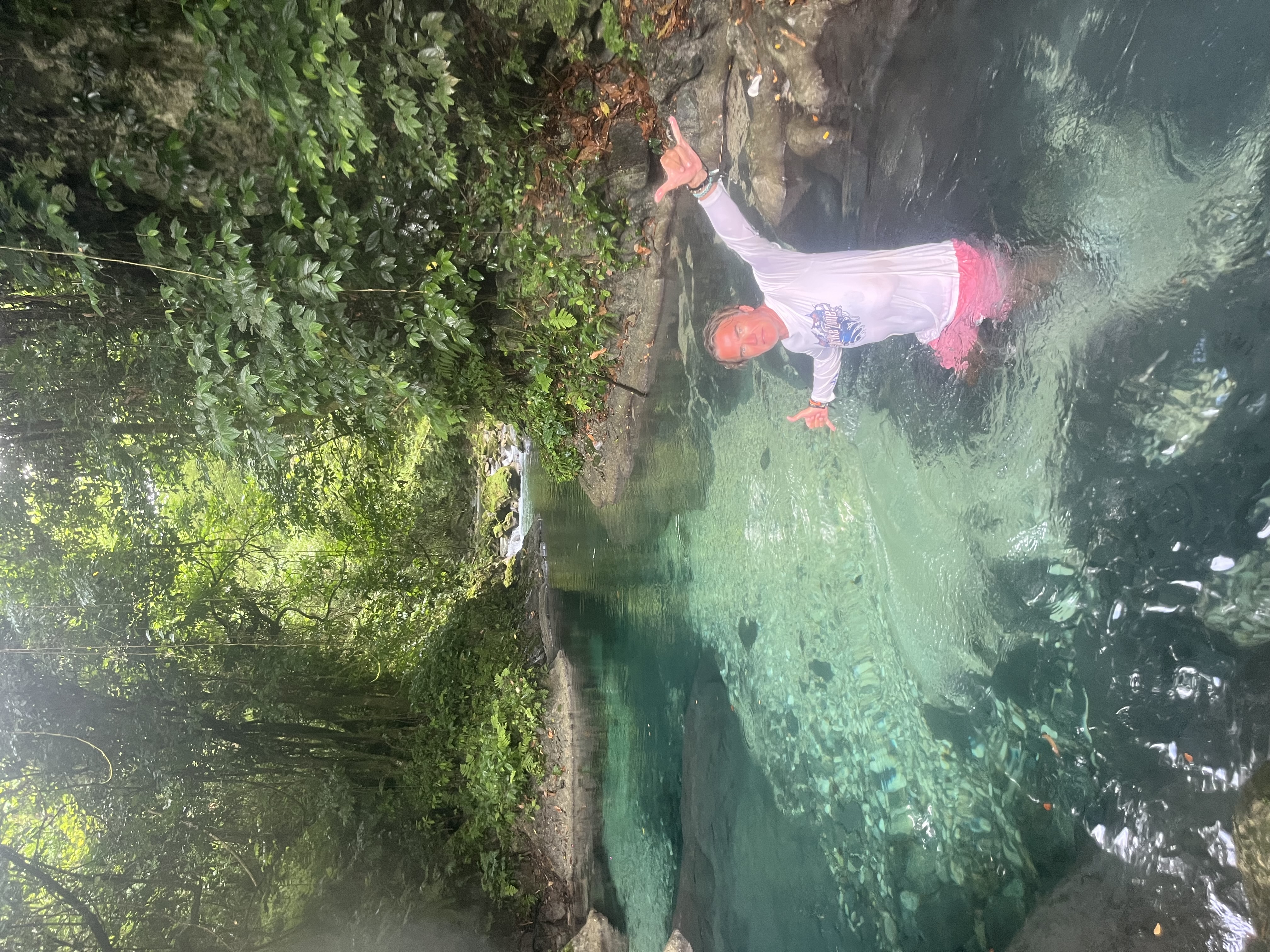 Les Reach Falls sont l’un des joyaux naturels les plus spectaculaires et préservés de la Jamaïque. C’est une cascade tropicale au cœur de la forêt luxuriante de la chaîne des John Crow Mountains, alimentée par la rivière Driver’s River. Reach Falls a été découvert par des esclaves en fuite issus de plantations de la paroisse voisine de Saint-Thomas, qui avaient cherché refuge dans les collines des monts John Crow. À notre arrivée ( très tôt le matin bien sûr), la verdure luxuriante de la forêt, les piscines naturelles et la cascade nous enchantent. Nous sommes seuls au monde pour profiter de cet endroit exceptionnel encore très préservé. Un guide (moyennant pourboire) nous propose de remonter dans l’eau, les chutes en passant sous la cascade et sous les grottes naturelles. Quelques petits sauts dans les piscines naturelles quand nous redescendons. Un petit défi sportif qu’on adore. On finit dans le bassin de la cascade principale pour un petit massage au jet naturel!!