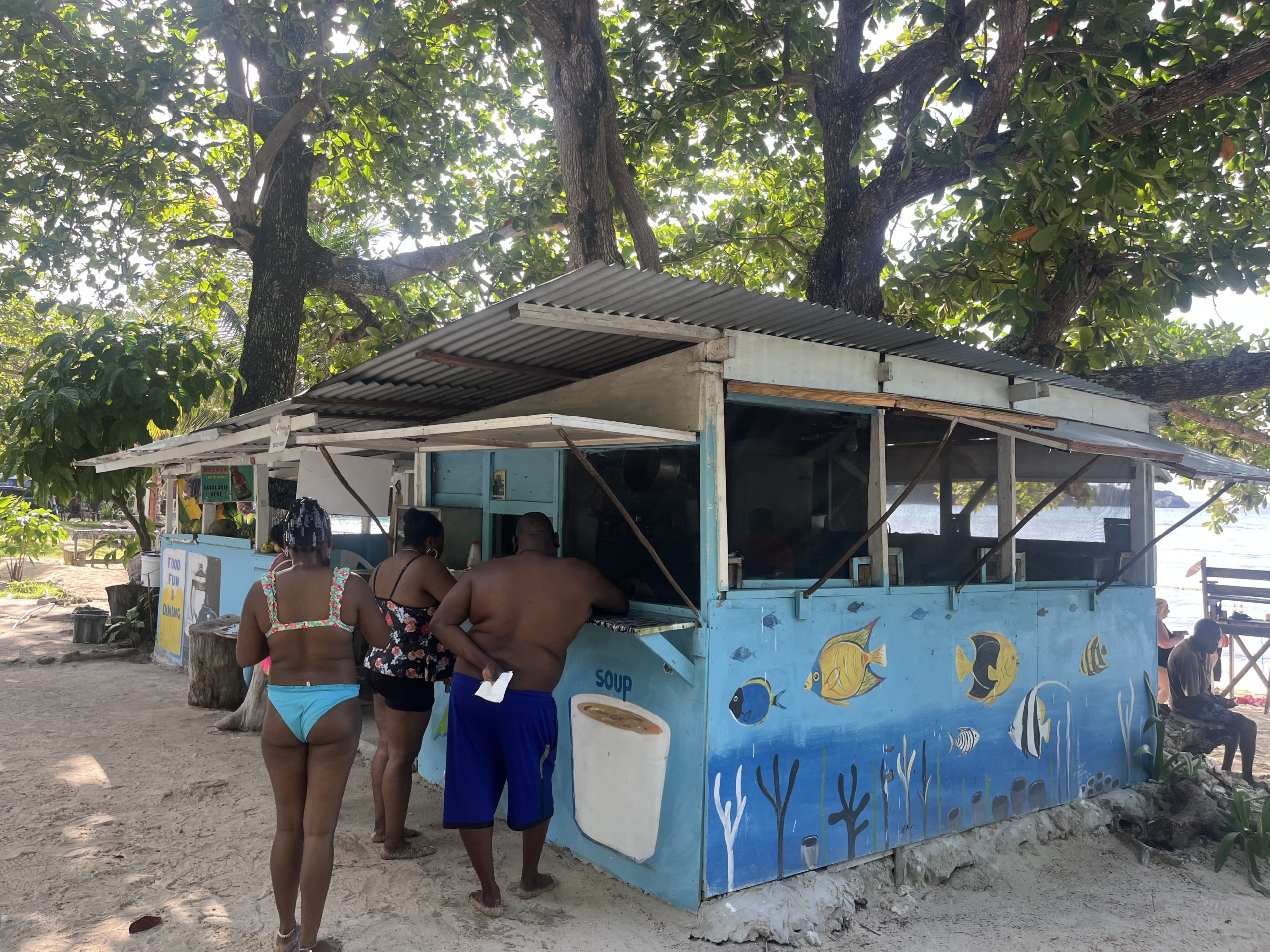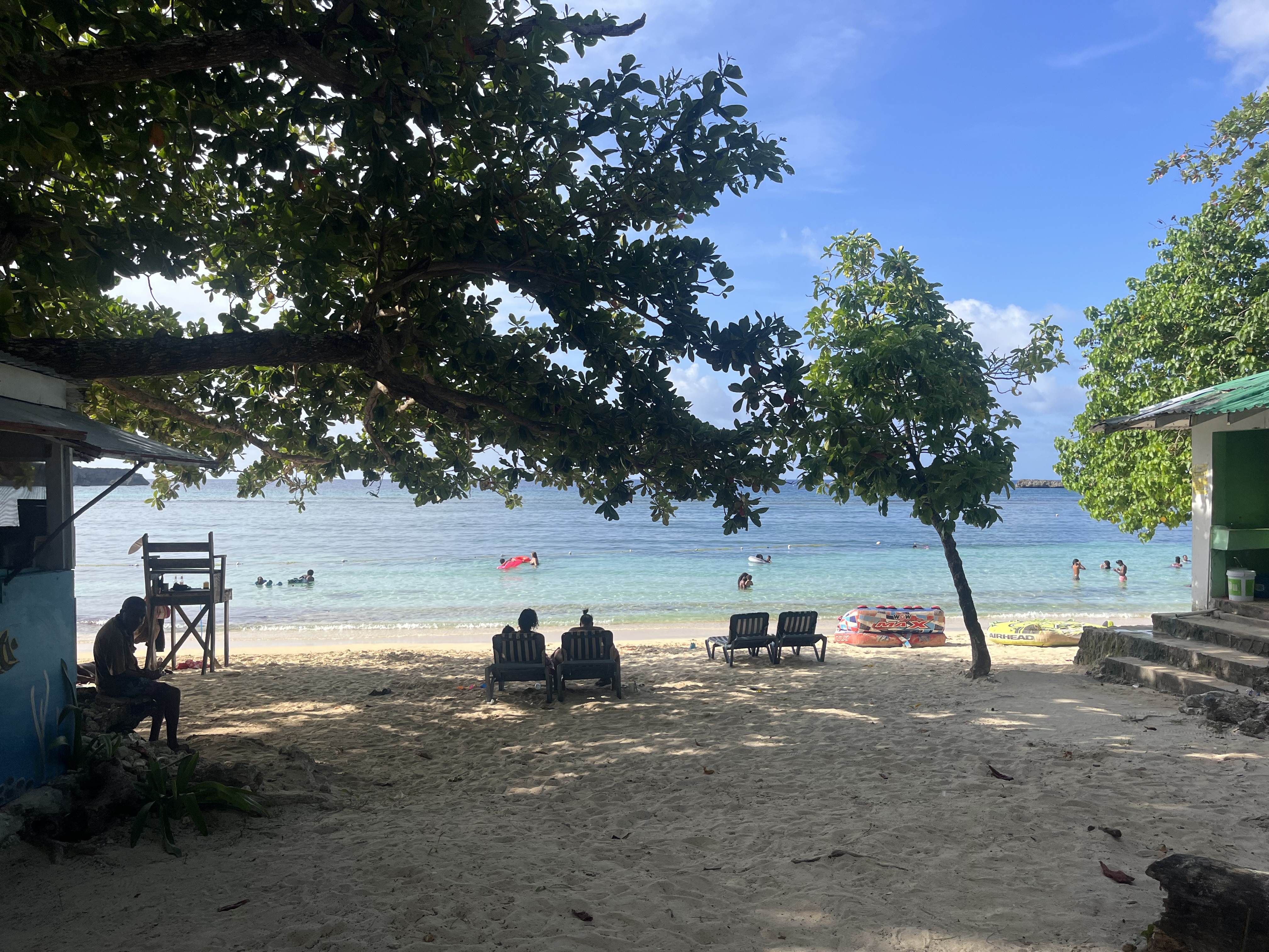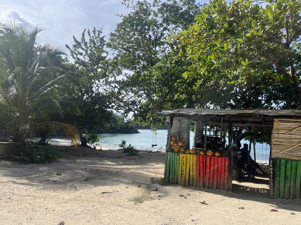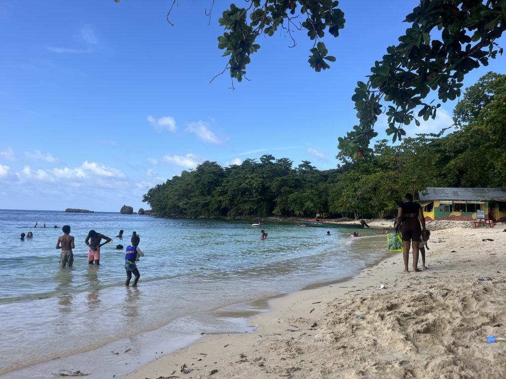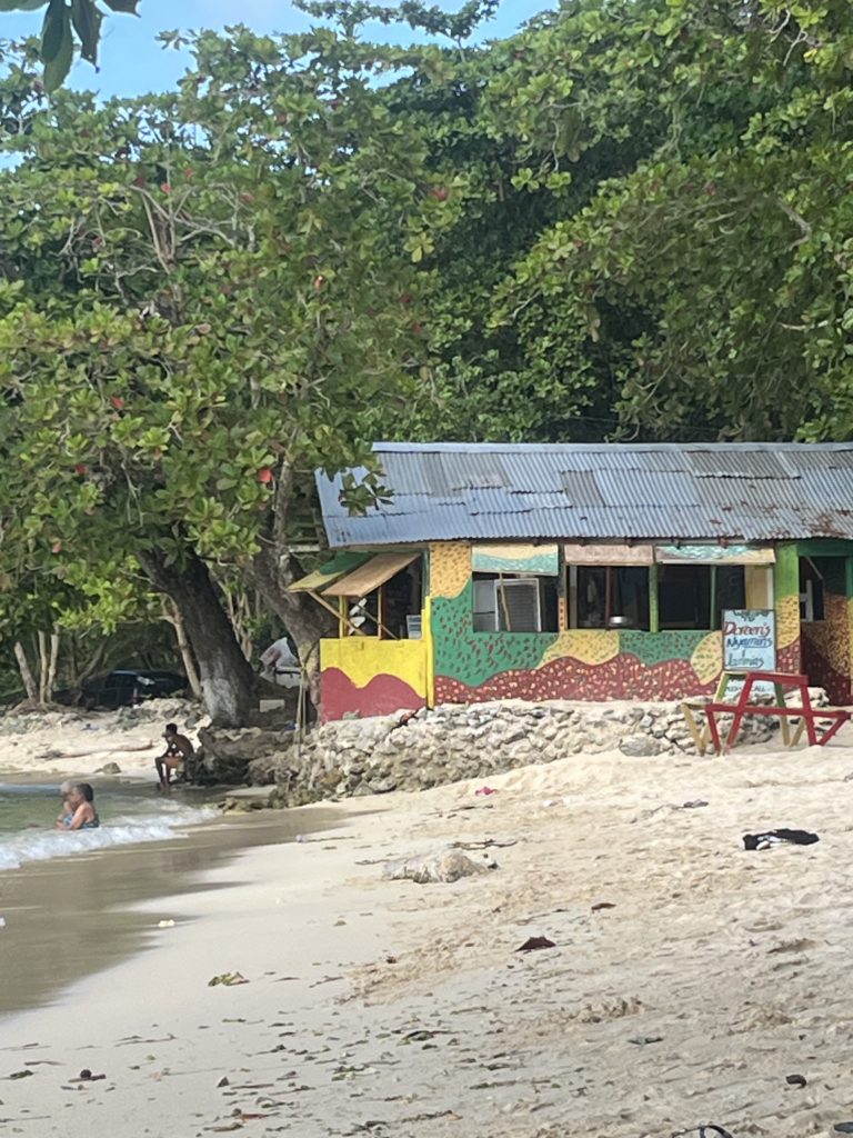Nous repartons en début d’après midi sur une nouvelle plage, Winifred Beach qui est bien plus qu’un simple coin de sable : c’est un héritage communautaire vivant, résultat d’années de lutte pour préserver l’accès public, fierté locale et modèle d’écotourisme respectueux. Une plage où le naturel, le culturel et le solidaire se rencontrent. On profite pour y manger un jerk chicken, les pieds dans l’eau. En Jamaïque, nous renouons encore une fois, avec le poulet riz mais en version épicée, comme cette île et ses habitants!