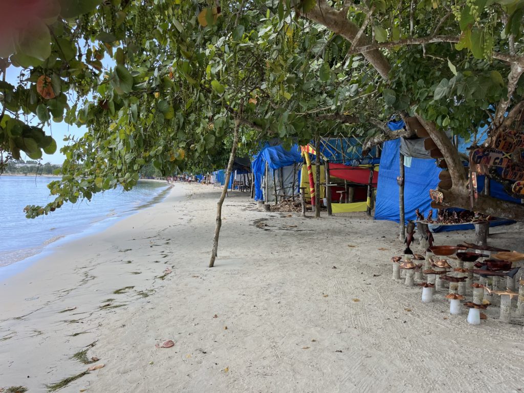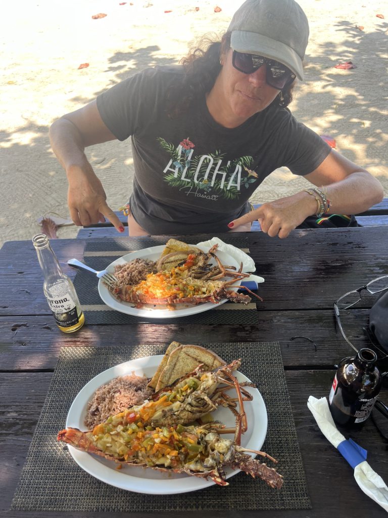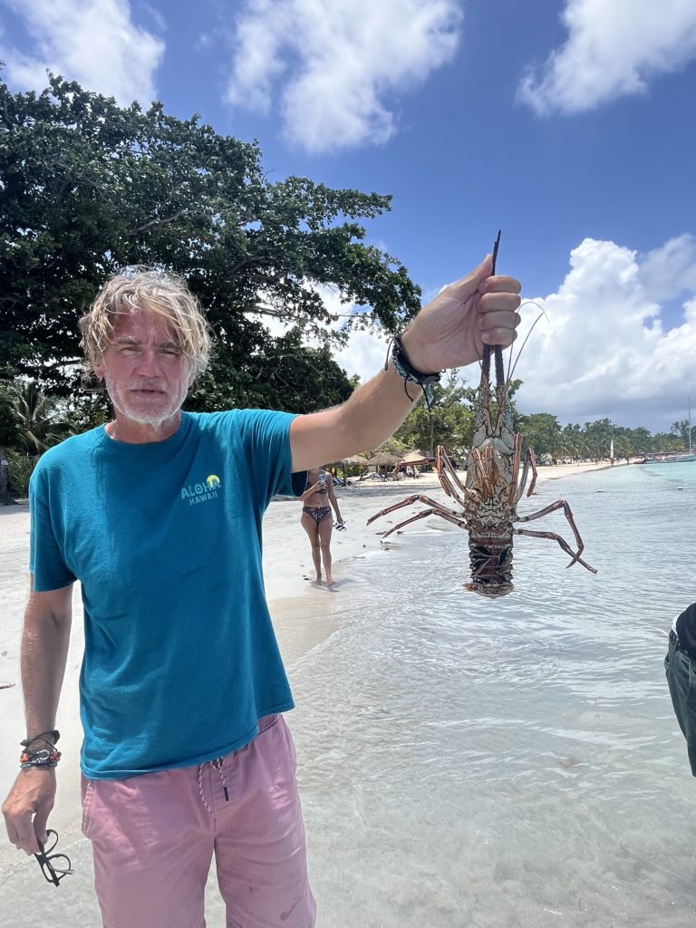Après un petit dej à l’hôtel, nous profitons que la mer soit calme pour un petit snorkeling au pied de l’hôtel qui regorge de calcaire corallien marin. Quelques petits poissons colorés font notre bonheur. Nous partons ensuite pour passer la journée à Bloody Bay, située juste au nord de Negril, sur la côte ouest de la Jamaïque, une baie paisible aux eaux turquoise . Mais comme son nom l’indique, elle est l’héritière d’un passé beaucoup plus sombre. En effet Bloody Bay était utilisée comme lieu de dépeçage de baleines. Les baleiniers les tuaient en mer, puis ramenaient les carcasses dans la baie pour les découper. Le sang des cétacés se déversait alors dans l’eau, la colorant de rouge. Ce spectacle régulier aurait inspiré le nom « Bloody Bay ». En tout cas, sa beauté est incomparable, ses eaux calmes sont turquoises et son sable blanc et fin comme de la farine. On y va pour s’y baigner et s’y détendre mais aussi et surtout pour déguster des langoustes, les pieds dans le sable. On jette notre dévolu sur un petit bar restaurant de plage, qui possède un casier à quelques mètres dans la mer, ou l’on peut choisir la malheureuse langouste que l’on veut sacrifier! Juste grillée fraîche au barbecue, le bonheur au son d’un chanteur reggae à la voix jamaïcaine rocailleuse et cassée si particulière. On reste l’écouter une bonne heure, avant d’aller se dégourdir les jambes tout au long de cette magnifique baie.