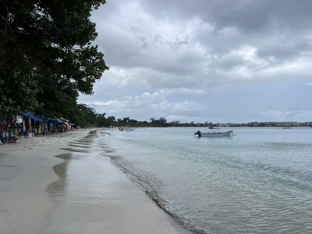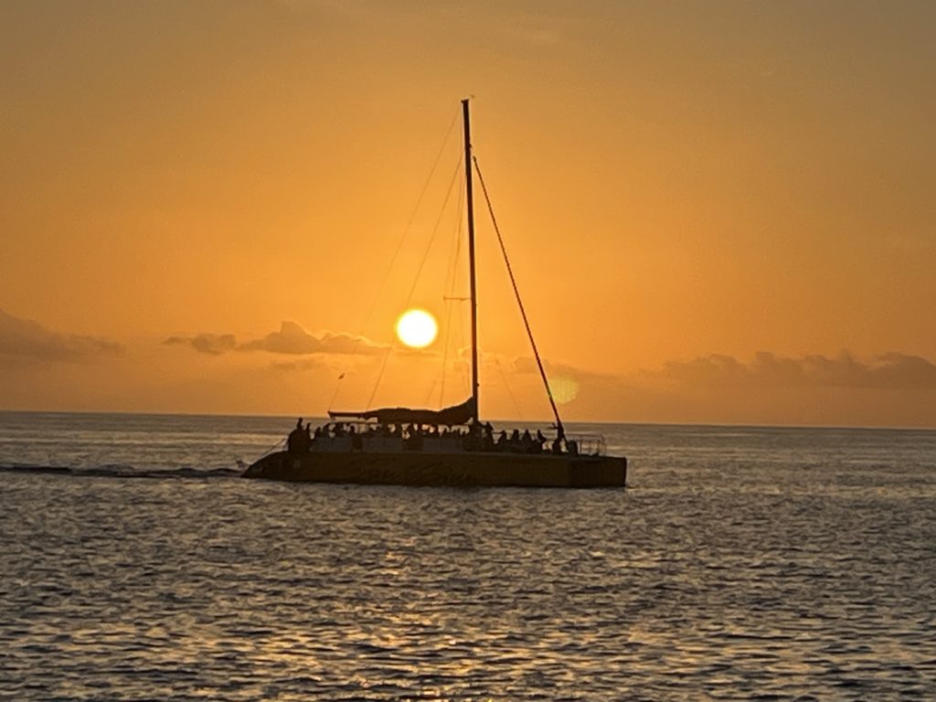 Nous rentrons juste à temps à l’hôtel avant une grosse pluie tropicale. Ce soir, après un petit cocktail pour admirer le coucher de soleil, nous testons le resto de l’hôtel et optons pour un jerk pork, histoire de changer du poulet! Mon palais s’en souvient encore 1h plus tard 🌶️ malheureusement