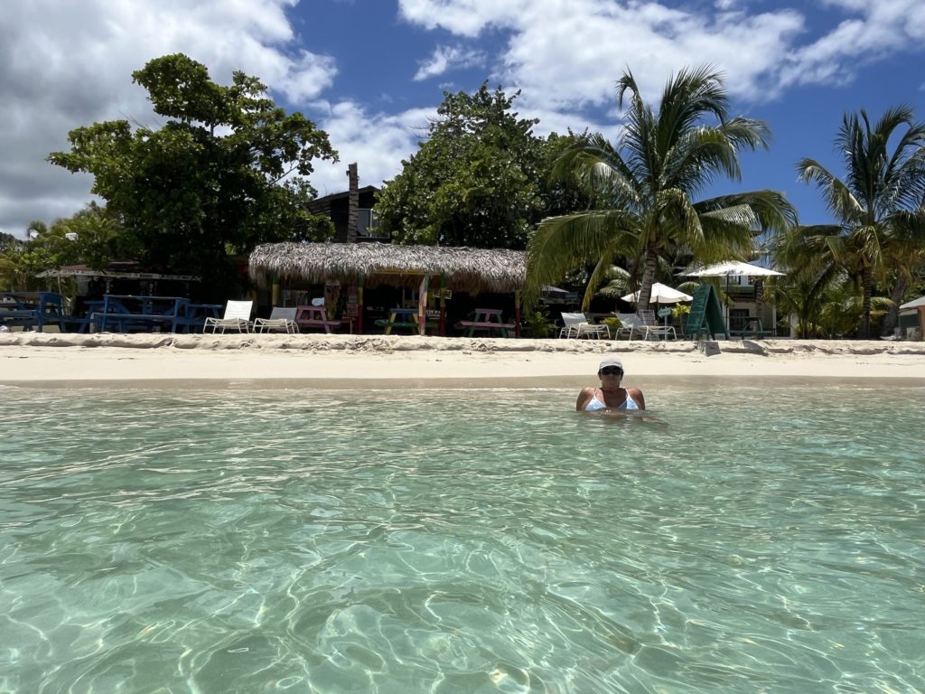 Nous laissons la voiture au repos ce matin et décidons d’aller rejoindre les plages alentours à pied. Rien de mieux pour découvrir la ville et les petits bars ou cafés sympa. Une fois arrivés sur coral beach, nous trouvons un petit bar rasta coloré ne proposant que des boissons à base de plantes, on s’y arrête pour une petite baignade dans l’eau turquoise. Puis nous repartons pour l’emblématique 7 miles beach. Contrairement à ce que son nom suggère, elle mesure environ 4 miles (6,5 km) de long. Cette plage est réputée pour ses eaux cristallines, son sable blanc poudreux et son ambiance décontractée, attirant les visiteurs depuis les années 1960.
