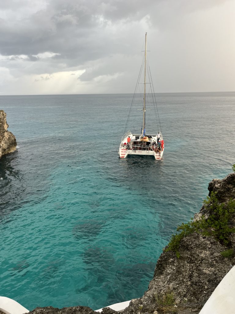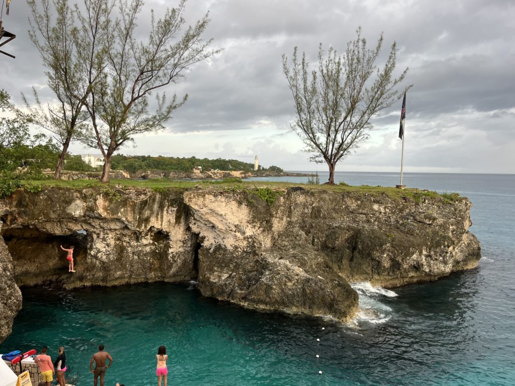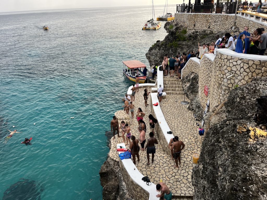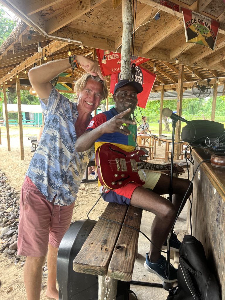 Autre lieu incontournable que l’on veut aussi tester: le Rick’s Café qui est l’un des établissements les plus emblématiques de la Jamaïque, offrant une expérience inoubliable mêlant vues imprenables, cuisine locale, musique live et sensations fortes. Fondé en 1974 par Richard Hershman, Rick’s Café est situé sur les falaises du West End de Negril, offrant une vue spectaculaire sur la mer des Caraïbes. L’endroit est réputé pour ses couchers de soleil à couper le souffle, souvent accompagnés de musique reggae en direct, créant une atmosphère chaleureuse et authentique. Les visiteurs audacieux peuvent sauter depuis des plateformes allant de 10 à 35 pieds (3 à 10 mètres). Aujourd’hui, pour le plus grand plaisir de Patrick, il y a des danseuses et des concours de booty shake. À mon grand étonnement, beaucoup de touristes n’hésitent pas à faire des démonstrations plus que hot de cette danse visiblement ancrée dans les mœurs jamaïcaines, quitte à découvrir une partie de leur anatomie très peu cachée par leurs minis strings!!!! Accessoirement, on découvre un jolie coucher de soleil malgré la pluie qui est tombée un peu plus tôt. Bien sûr, Patrick veut revenir demain pour admirer …. Le coucher de soleil 🙄 🤣😬